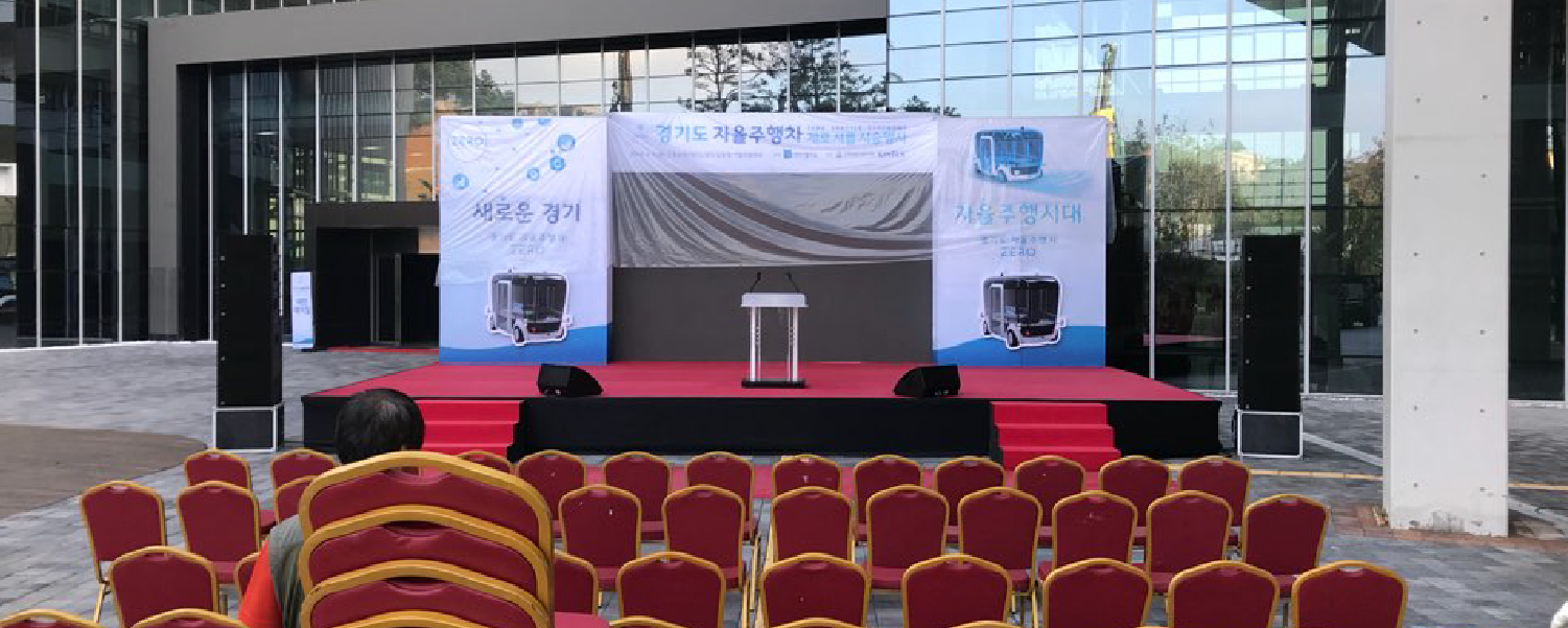 높고 푸른하늘의 가을의 문턱 9월이 되었습니다. 태풍의 영향으로 행사 전날 많은 비가 내려 걱정이 많았는데요, 그럼에도 불구하고 행사당일 이른아침부터 맑고 상쾌한 날씨가 되어 에이블랩은 일할 맛이 UP!UP! 이번에는 에이블랩이 2018 경기도 자율주행차 ‘제로셔틀’ 시승행사에 [오프닝터치포디움]을 진행하게 되었습니다.