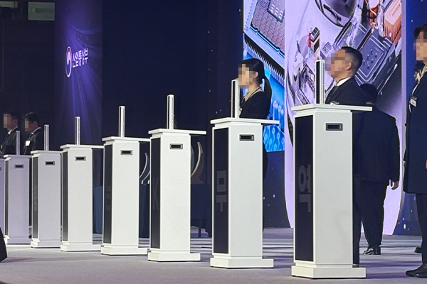 OTP V2는 전면 LCD 디스플레이가 장착되어 있어 무대가 없는 행사에서는 공간을 채우는 시각적 포인트로, 대규모 무대에서는 무대의 품격과 완성도를 높이는 오브제로 활용됩니다. 상단 태블릿을 통해 무대 위 내빈들도 관람객과 같은 화면을 실시간으로 공유하며 보다 몰입감 있는 참여가 가능합니다.