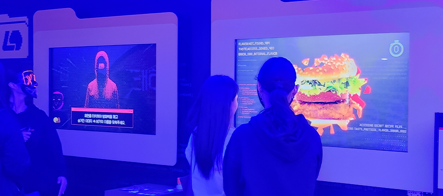 첫 번째 는터치 프로그램 ‘해커의 노트북’으로, 해킹된 노트북을 복원한다는 설정 속에서 제한 시간 동안 화면의 방어벽을 해체하고, 드러나는 단서를 통해 어떤 버거인지 맞히는 미션 게임입니다. 터치할수록 버거의 정체가 조금씩 드러나면서 긴장감과 재미가 더해집니다. 두번째 시크릿스크린 서치 게임에서는 감춰진 해커의 이름을 찾아내며 팝업 공간 전체가 하나의 탐정 무대가 되어 팝업 공간의 몰입감을 더욱 Up 시켰답니다. 이번주 일요일(28일)까지 진행중이니 어서 서둘러 가보세요~~~