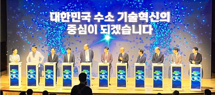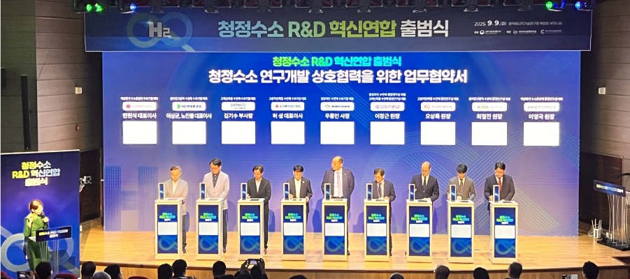 9월 9일, 한국에너지기술연구원에서 열린 ‘청정수소 R&D 혁신 연합’ 출범식에 에이블랩의 오프닝터치포디움이 함께했습니다. 산·학·연 관계자 150여 명이 참석한 이 자리는, 2030년까지 청정수소 생산기술 국산화율 100%를 목표로 기업과 연구기관이 힘을 모으는 의미 있는 자리였죠. 행사의 클라이맥스 순간, 주요 인사들이 포디움에 서명을 하면 곧바로 대형 스크린에 시각화되고, 마지막 버튼 트리거와 함께 출범 메시지가 화려하게 연출되었습니다. 단순한 서명식이 아닌, 모두가 함께 출범을 실감하고 기억할 수 있는 순간으로 변신!