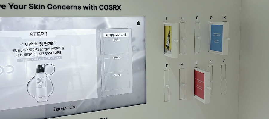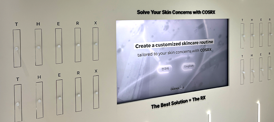 글로벌 더마 코스메틱 브랜드 COSRX(코스알엑스) 팝업스토어에 인터랙티브 터치 프로그램을 제작·설치했습니다. 이번 팝업은 11월 25일부터 30일까지 성수 스테이지35에서 진행되는데요. 전 세계 피부 데이터를 기반으로 한 맞춤 더마 솔루션 연구소(더마 랩) 콘셉트로 꾸며진 팝업스토어에서 방문객들은 자신의 피부 타입과 고민을 진단받고, 맞춤형 스킨케어 루틴을 체험할 수 있는 디지털 요소들이 풍성하게 구성되어 있다고 해요. 이번 터치 키오스크는 COSRX의 THE RX 더마 라인을 자연스럽게 학습할 수 있도록 설계한 체험형 콘텐츠로, 사용자가 자신의 피부 고민에 맞는 제품을 게임 형식으로 선택·매칭하며 브랜드의 “맞춤 처방(RX)” 메시지를 직관적으로 이해할 수 있도록 구현했어요 또한 성수 팝업의 글로벌 특성!을 고려해 한국어·영어 버전으로 나누어 제공하여 외국인 방문객들도 쉽고 재미있게 참여할 수 있도록 구성했답니다.