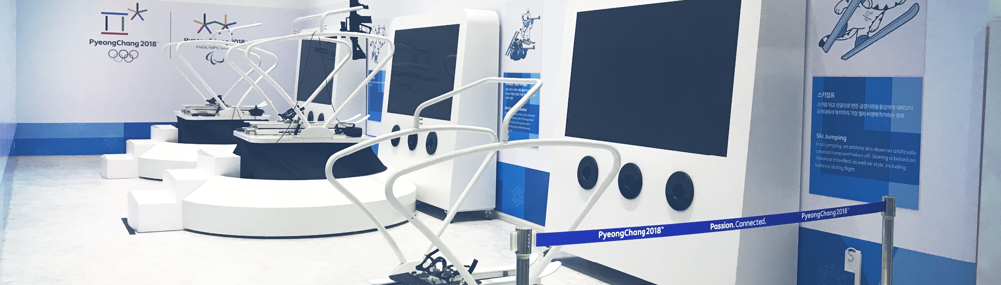 1 1 강릉 평창동계올림픽 홍보관 @강릉평창홍보관(강릉시 난설헌로 131) 강릉에 위치한 평창홍보관 내 에이블랩의 VR동계스포츠 시뮬레이터-스키점프, 바이애슬론, 스피드스케이팅-들이 설치되었습니다. 오는 2018년 상반기까지 상설로 운영될 예정으로 강릉을 방문하시는 분들은 언제든지(월요일 휴관) 무/료/로 체험이 가능합니다! (전화033-651-1722 / 매일 10:00~18:00 (화-일)
