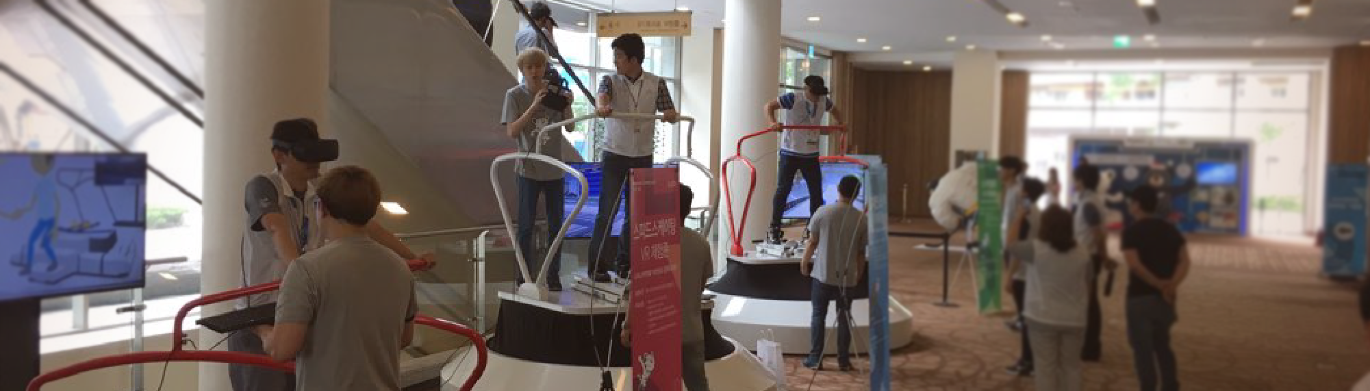 지난 7월 24일 강원도 평창 알펜시아리조트 컨벤션센터에 마련된 특설무대에서 열린 2018 평창동계올림픽의 대회 성공적 개최를 기원하는 ‘G-200 평창을 준비하는 사람들’에 에이블랩의 VR시뮬레이터 3총사(스키, 스키점프, 스피드스케이팅)도 함께 하였습니다! 문재인대통령님이 시연해 주시기를 간절히 원하였지만, 안타깝게도 Pass~ 다음에는 꼭!!!! 타주세요…라고 속으로 외쳐보았습니다.^^