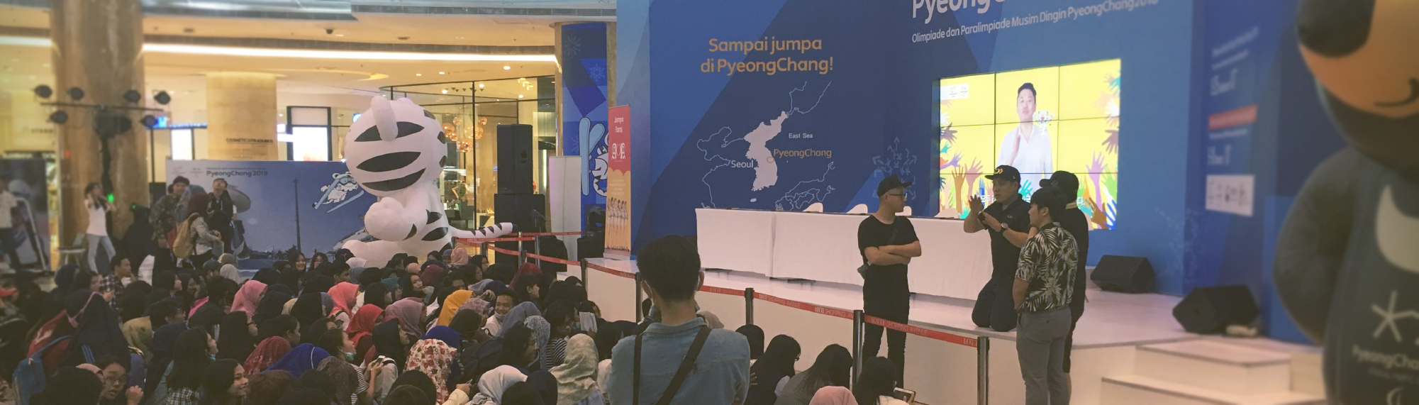 문재인 대통령 동남아 순방 일정에 맞춰 2018 평창 동계올림픽대회 및 동계패럴림픽대회에 대한 해외 홍보를 위해 에이블랩도 출동하였습니다. 지난 8일 자카르타에서 열린 수호랑·반다비와 함께한 동포간담회에서 홍보위원 위촉을 비롯한 홍보 행사에 이어 9일 자카르타 롯데애비뉴에선 평창홍보 체험존을 운영해 현지인들로부터 큰 인기를 끌었는데요. 히잡을 쓴 현지 여자분들부터 근엄하기로 소문난 청와대 경호원분들까지…저희 VR스키 시뮬레이터의 인기도… 후끈…………..까지는 아니고 따뜻했구요. 사실 AOA….;;; 정말 평창동계올림픽이.. 성공리에 개최되었으면. 좋겠습니다. 진짜~~~