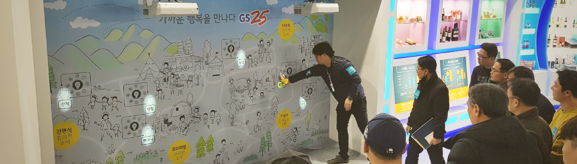 역대 최강 한파가 한풀 꺾이고 낮에는 슬슬 봄내음이 물씬 풍기는 요즘! 한발 빨리 봄을 준비하는 곳에 다녀왔습니다. 흠흠.. 뉴스 앵커같았나요?^^ 저희 에이블랩은 올해 첫 봄 행사의 포문을 GS25와 함께 열었습니다. 이름하여 ‘GS25 봄맞이 한마당’. 이 행사는 GS25가 경영주들에게 올해 편의점 상품의 트렌드를 소개하고 새롭게 도입하는 상품과 서비스를 미리 경험해 볼 수 있는 기회를 제공하는 행사라고 합니다. 내부 행사라고 해서 사실 작은 규모의 행사겠구나 헀는데 이게 뭔일! 볼거리 먹을거리 즐길거리 정말 풍성한 전시여서 깜짝 놀랬어요. 일반인에게 오픈이 되는 행사가 아닌지라 아쉽긴 하지만… 혹시 지인 찬스를 쓸 수 있다면 꼭 방문해 보시는 것도 좋을 것 같습니다! 오는 3월 3일까지는 서울 양재동 AT센터에서 그리고 3월 8일과 9일에는 부산 벡스코에서 전시회는 진행됩니다~
