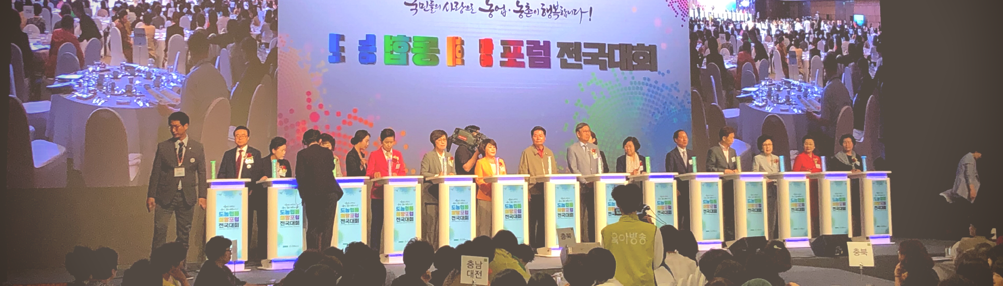 한바탕 비가 내리고 5월의 폭염?이 깨끗하게 씻겨 내려간 화창하고 맑은 여의도의 랜드마크 ’63컨벤션센터’에서 전국 여성단체와 소비자단체 리더 등 600여명이 넘는 많은 분들이 한자리에 참여한 ‘2019 도농협동희망포럼 전국대회’가 개최되었습니다. 농업과 농촌에 대한 가치를 알리고, 도농간의 교류 확산을 위해 개최한 이번 행사는 김병원 농협회장의 환영사를 비롯한 다양한 퍼포먼스와 특강으로 진행되었습니다. 이번 행사의 주된 목표인 농업인과 국민 모두의 행복을 증진시키는 농업과 농촌의 소중한 가치를 보다 정확하게 알리는 자리로 현장의 분위기는 뜨거웠습니다.