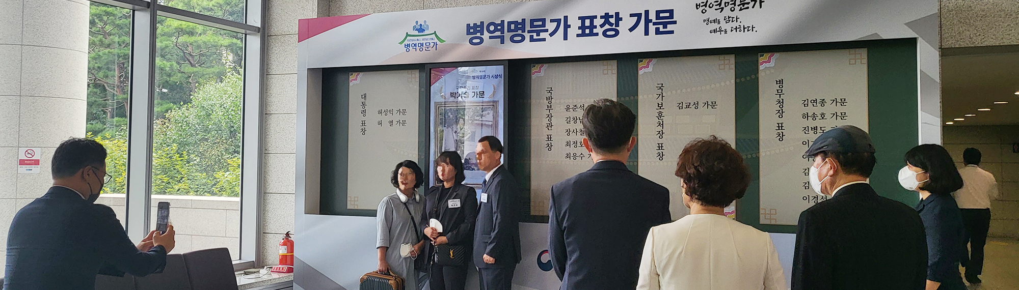 병무청 주최하에 백범 김구 기념관에서 제19회 병역명문가 시상식이 개최되었는데요. 병역명문가란 3대가 명예롭게 현역 복무를 마친 가문으로 독립군, 한국광복군 등으로 활동한 독립유공자, 학도의용군 등으로 6·25전쟁에 참전한 사람 등도 포함된다고 합니다. 이렇게 대를 이어 나라사랑을 실천하는 병역병문가들을 소개하기 위한 타임라인을 설치하였는데요. 스크린을 이동시키면 대통령표창, 국무총리표창 등 성실히 군복무를 이행한 가문들이 나타나고, 개별 가문을 터치하면 상세내용이 소개되었습니다. 이날 별도의 포토존이 있었음에도 줄을 지어 사진을 찍으실만큼 인기 아이템이었습니다!