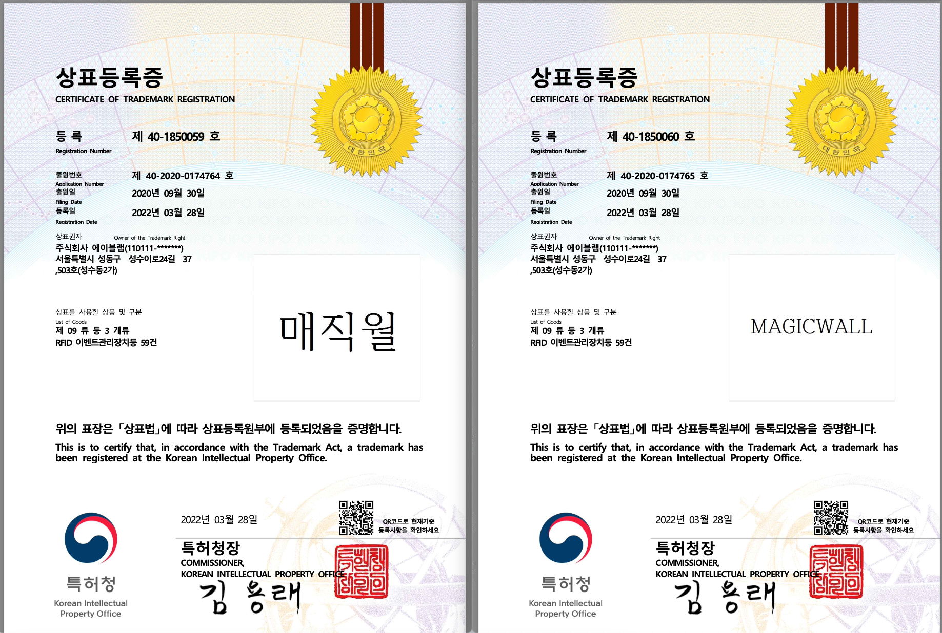 상표 등록 (9,41,42류) 「매직월」,「magicwall」